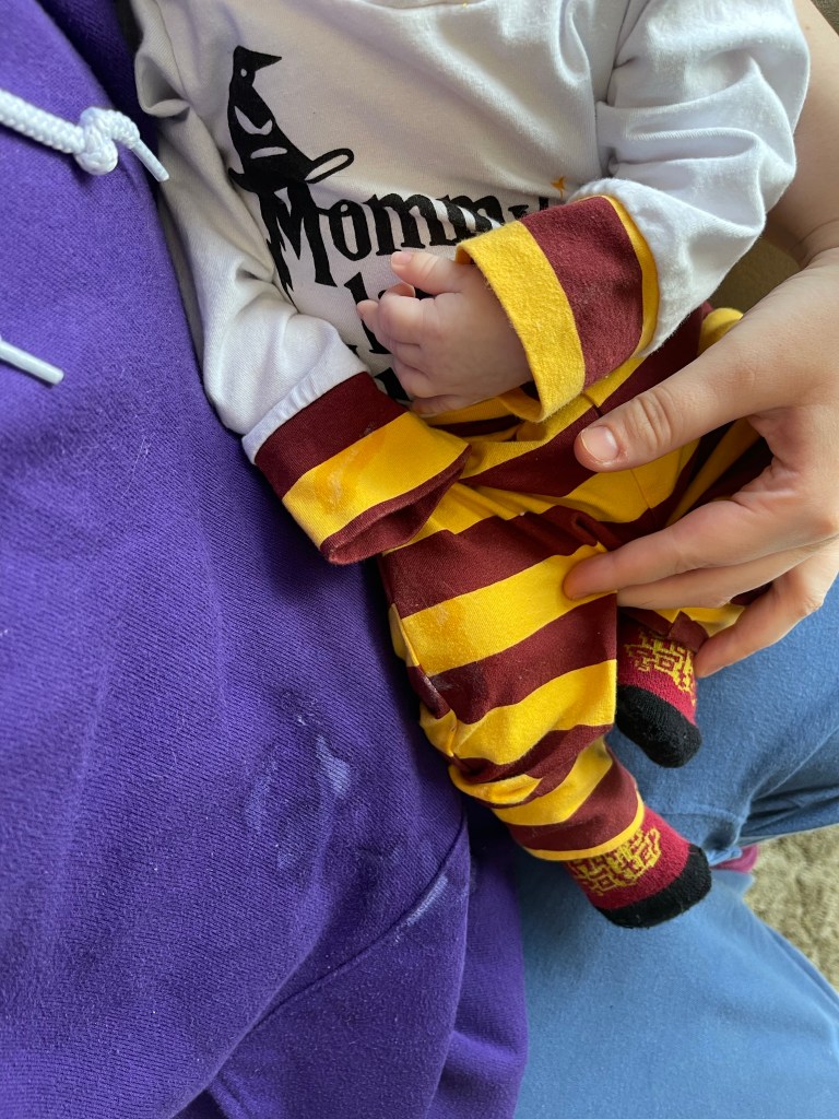 Baby Goose has been amazing since day one. Now, he only ever had spit up once in the hospital and then not at all since coming home. Well, that changed. I finally got him dressed for a day out without having a plan to actually go anywhere. Apparently that was against the rules because Baby Goose spit up at home for the first time!
